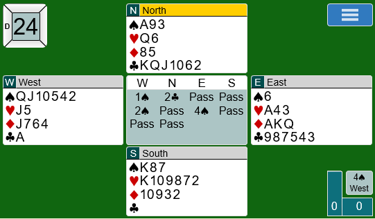 Ved det andre bordet åpnet Duboin med 3 spar i syd, og da gikk det pass rundt. Ikke helt unaturlig at ingen følte de hadde noe å tilføye.