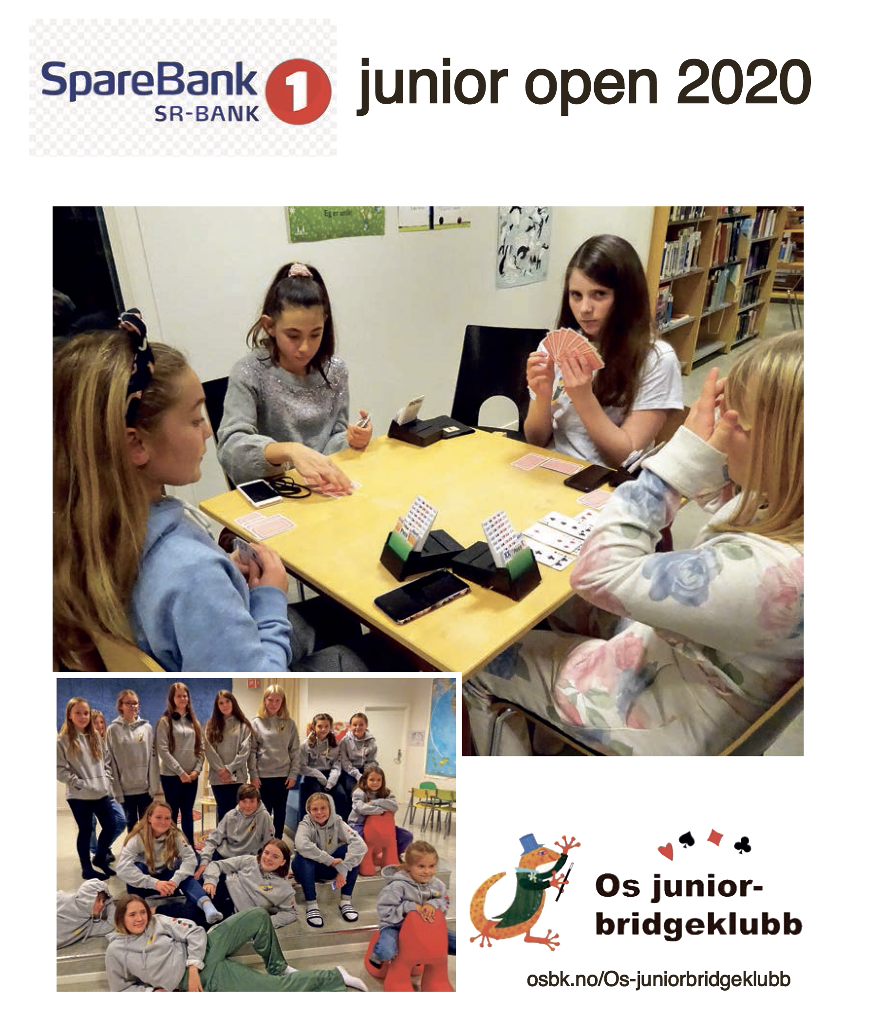 Os juniorbridgeklubb innbyr til juniorturnering helga 17. - 19. januar. Spre info om turneringa til alle som er i junioralder og speler bridge. Klikk biletet for program