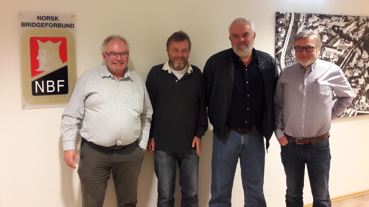 Lag Johnsen vant til slutt kvalifiseringskampen med mer enn 100 IMP. Fra venstre Sverre Johnsen, Jan Mikkelsen, Åsmund Stokkeland og Arve Farstad.