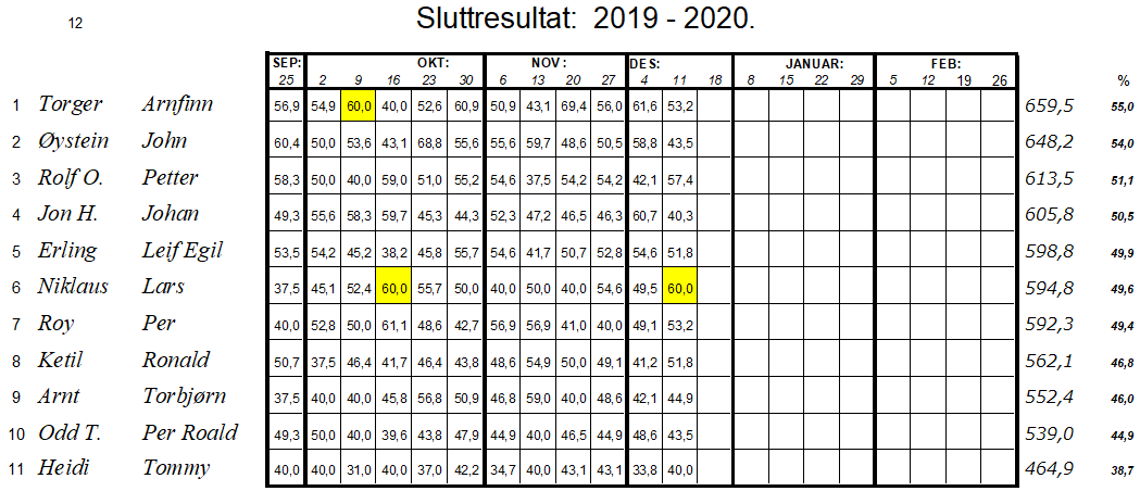 Her er sammenlagt status pr 11.12.2019: