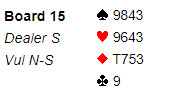 Spillet var altså en gratissjanse jeg hadde fått, og med ruterutspill ville det som du ser blitt fire bet! Det står ikke engang i 3 grand om vest blir spillefører og ruter kommer i utspill (syd får fem ruterstikk)!