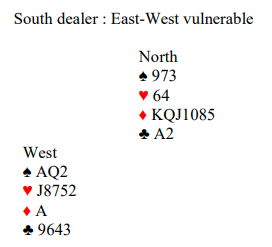 "Hah! Ja denna kommer vel i "Retten"?" Vest, makker til bridgejournalisten er i støtet. "Ja, om ikke også i "Fjell-Lom"?!"