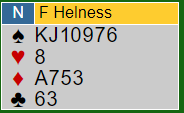 Gunn Helness sin 4 rutermelding kan sikkert diskuteres. Det er imidlertid ofte godt å få sagt fra om en bra sekskortsfarge. Hun tenkte nok at de kunne spille 4 spar doblet hvis ikke ruter passet så godt. Ankepunktet mot meldingen er at det ligner veldig på utspillsdirigerende, og om makker for eksempel spiller ut ruter ess med den sterk hånden hos vest behøver ikke være så bra. Her hadde vest ruter konge singel, men han kunne jo hatt konge dobbel.