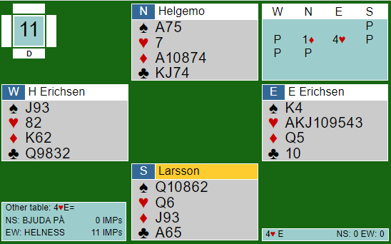 Pluss 50 til BJUDA PÅ var verd 10 IMP, og de var like langt. (Kampen endte 12-10)