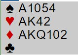 Han åpnet også med 1 ruter, men makkeren hans var mer optimistisk enn meg og svarte 1 hjerter. Jeg tror ikke det er vinnende i lengden fem "softe" poeng og 3433 fordeling. Hvis makker er sterk vil han etter 1-over-1 svaret alt for ofte melde for hardt og en havner på tre- eller firetrinnet med bet.