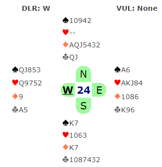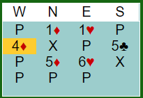 Her var selvsagt 6 hjerter temmelig dårlig da kontrakten var avhengig av spar konge singel. Det var bare ett kort unna, men selvsagt var det feil å være i 6 hjerter her når man ser alle kortene. Ett par til av de åtte Ø/V-parene gikk bet i slem.