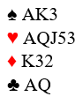 Det var nyttig informasjon for vest som vet at det er to farger som går, ti stikk til sammen der, samt A+K i ruter og kløver ess = tretten stikk!