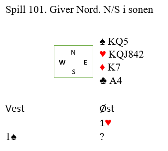 Nord åpner med 1 hjerter. Melder du noe nå, og i så fall hva?