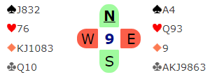 Kvamsdal (syd) åpnet med 4 ruter som viste gående spar og ca. 8 stikk. Holen sa 4 spar og fikk altså spille utgangen fra nord som er gunstig siden øst må spille ut opp mot nords fargekombinasjoner. Øst valgte kløver ut, ikke heldig, men noe må man jo spille ut. Med trumf ut så går det nok an å ramle ned på ti stikk, men det er muligheter for elleve da også hvis sitsen leses korrekt. De som fikk kun ti stikk måtte akseptere -11 (-23 var ren bunn). Det er altså normalt ti-elleve stikk i dette spillet, både i spar- og grandkontrakt, så i lagkamp ville det blir fort glemt, kanskje kun med 1 IMP utslag. Men dette var parturnering...