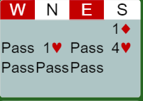 Syds 1 ruter var minst tre-korts ruter (beste minor stil), og hoppet til 4 hjerter typisk 18-19 uten kortfarge. Hva ville du spilt ut mot 4 hjerter?