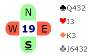 I Gressvik BK mandag var det skarp kamp om tetplassen. Makker og jeg hadde WO i nest siste runde, men Jan Erik – Tore som ledet hadde spill der følgende var en spilleprøve som Jan Erik fikk å bryne seg på. Syd og alle i faresonen.