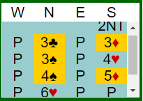 En kan kanskje med veldig god vilje forstå optimismen, men å kontrollmelde blir i alle fall feil. Etter to kontrollmeldinger meldte de slem. Hvis man går videre er det med så dårlig trumf hos nord mye bedre å spørre med Key Card Blackwood så unngås i alle falle en så dårlig slem som dette.