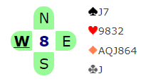 Ruter konge vant første stikk, og Eide hadde ni raske stikk (2+5+1+1=9), lag SILLA +400.
