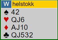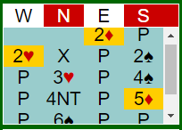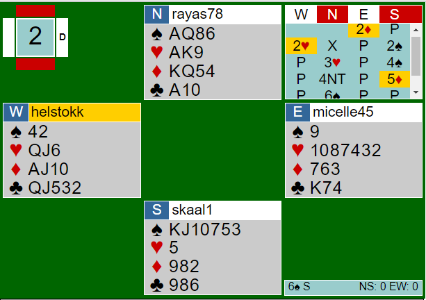 Østs 2 ruter viste en svak svake 2 i en major. Syds 5 ruter viste ett nøkkelkort (essene og trumf konge).