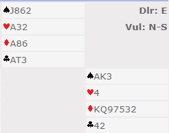 Beste slem er 6NT (eller 6 ruter) hvor det eneste som må til er 3-2 sits i ruter.