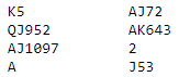 I 5 ruter kom spar ut til esset og hjerter fra Øst til makkers ess og så sto resten. De som var i 3 NT av syd fikk mange spar (invitt) ut fra Øst og man kom ikk i 1. stikk og hadde dermed 12 stikk rett ned. Men hadde Vest og Øst byttet kort og Øst da hadde spilt ut sp J ville det vært prekært om Vest stakk med sp A og returnerte hjerter. Da får Nord et vrient valg, legge i hj K eller la den løpe mot kjneten ved å legge på hj 2 fra hånden. Vinn eller forsvinn! Lett etterpå.