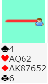 Min makker hadde imidlertid andre planer. Hva med opplysende dobling først? Det er ikke helt galt, da kan du også ta ut makkers eventuelle kløvermelding i ruter for å fortelle at du ikke har en typisk doblingshånd. Hvis makker melder hjerter, blir dobling stor suksess! Et minus med opplysende dobling er nok at det kan gå pass rundt på 1 spar doblet av og til hvis makker har mange spar. Det kan jo bli bra, men hvis makker har noen rutere kan det også hende denne hånden ikke gir mange motspillstikk. Så selv ville jeg nok sagt 2 ruter.
