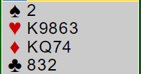 Der nord åpnet gjorde han det med 10 poeng og bra fordeling. Dermed var det faktisk syd som hadde ruter dame (tredje).