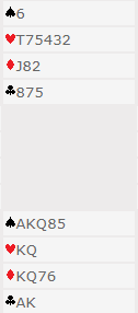 Slik kortene så ut var imidlertid slem glimrende, og spørsmålet er hvordan melde den når det mangler ett nøkkelkort og også trumf dame: