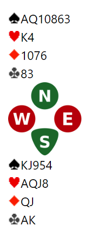 Martin Andresen (lag SKEIDAR) åpnet med 1 spar. Da fikk Chirster Kristoffersen et problem med nords kort. Han vil selvsagt i utgang. Men han er på et vis for sterk til å melde 4 spar direkte da det ikke bør være med en så god hånd. Hvis det er for stor "range" for det direkte svarhoppet til 4 i åpnerens majorfarge blir det umulig for åpneren å vite hva han skal gjøre med sterke kort. Hvis "rangen" er vid for slike meldinger blir det gjettverk. Går åpneren videre har kanskje svarhånden nesten ingenting, kun fem-seks spar og bra fordeling, og det kanvære bet på femtrinnet allerede. Hvis åpneren passer på 4 spar har kanskje svarhånden noen bra verdier, og en god slem kan bli misset.