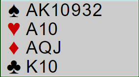 Jeg liker Thomas Charlsen sitt valg av åpningsmelding med nords kort. Det kan sikkert diskuteres, men i alle fall var hans valg en praktisk løsning. Han viste hånden som en sterk grandhånd. Det er 21 poeng, men hånden er soleklart verd mer med den gode fargen og må følgelig oppjusteres til mer enn en 20-21 NT.