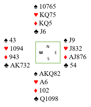 Teller du opp stikk under forutsetning 2-1 imot i trumf får du: 2+ 6 stjelinger i trumf, 3 i spar og et i kløver hvis det kan godspilles. Med det blir bare 11 stikk. Sparen kan sitte 3-3 og dermed gi 4 stikk. Kl A kan være i Nord men det er lite trolig med tanke på Marthinusens sperreåpning