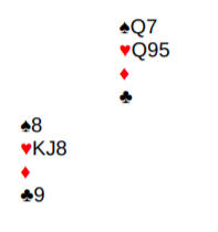 Her må det et vakkert dronningoffer til. Du må i diagramsituasjonen stikke med spar dame og spille hjerter dame tilbake! Det blir særdeles effektivt motspill hvis sluttposisjonen ganske sikkert er akkurat slik du ser for deg: