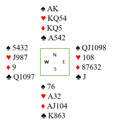 Det er klart at om jeg (nord) vet at syd har hjerter ess kan jeg løse dette til tross for at vi bruker lavt som styrke og syd legger knekten. Jeg kunne tatt for kløver konge FØR jeg spiller hjerter. Da vet syd at det ikke er mer å hente i kløver (nord ville spilt ut kongen fra AK-blokk) og stikker med hjerter ess før han fortsetter med hjerter til stjeling – en bet. Og en bet ville vært usedvanlig gullkantet.