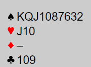 Sålangt er det mye info ute og går, og makkeren din spiller ut liten ruter, som indikerer 3 kort i fargen: