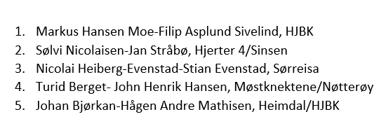 Vinnerparet er fra Helgeland Juniorklubb (HJBK), og dette er vel et av de yngste makkerparene som har vunnet en stor turnering i Norge; Markus Hansen Moe er 10 år, og makkeren Filip Asplund Sivelind er 12!