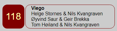 Til slutt var VIEGO 12 IMP foran EFC HOLDING etter at sistnevnte lag ledet med 3 IMP idet det stod igjen seks spill, og lagene stod likt idet det gjenstod fire spill!