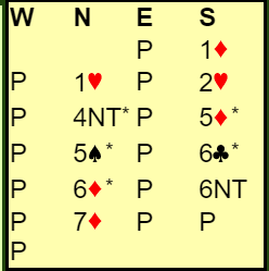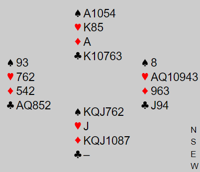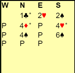 Syd meldte det hun trodde stod etter at nord hadde vist en sterk åpningshånd, kortfarge i ruter (Splinter) og trumftilpasning.