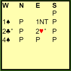 Vest sin 2 kløver er "Gazilli", kunstig melding som lover minst 16 poeng. Øst sin 2 hjerter viser mindre enn 8 poeng og lang hjerterfarge.