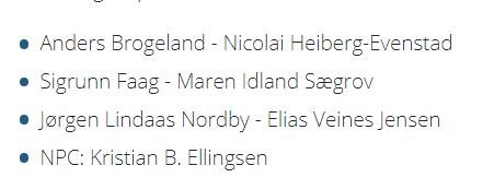 Pris kr 50.- til VIPPS 563996 eller kontonr 4202.39.67302. Fint om 1 betaler for paret, husk å skrive hvem som spiller