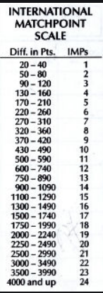 Imp-skalaen går som de fleste vet fra 0 IMP (0-10 differanse i score ved de to bordene) til maksimum på et spill som er 24 IMP (minst 4000 i differanse). Å oppnå maks IMP score skjer omtrent aldri. Men i RealBridge MIXLAG klarte i alle fall et lag som kaller seg "Med fokus på Ida" en dobbelscore som ga uvanlige 21 IMP! Og Ida (Wennevold) hadde en av hovedrollene.