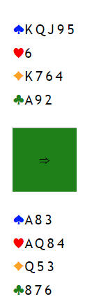 Med spar konge i utspill mot nords grandkontrakt kan spillefører med åpne kort stikke med en gang og presse ut hjerter ess. Det blir i så fall tolv stikk (1+3+7+1= 12) fordi vest ikke har flere spar.