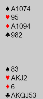 6 kløver er en ganske brukbar slem pga. dobbelton hjerter og kløvertilpasning hos nord. Av de 15 N/S-parene var det imidlertid kun tre som meldte 6 kløver.