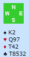 Vest spilte ut kløver dame. Kløverfargen med åtte kort til sammen kunne andre ganger gitt potensiale for flere stikk, men da det gikk kløver dame, ess og kongen fra øst så ikke det så lovende ut.