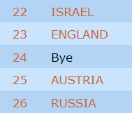Boikotten mot Italia fortsetter. Alle de ti lagene som skulle ha spilt mot Italia så langt har valgt å ikke stille opp. Italia ligger dermed på 6.plass på tabellen, en ganske bisarr situasjon, for de har 120 VP (10 x 12-= VP) uten å ha spilt ett eneste kort!