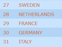 Ned til 9.plassen (8 nasjoner kvaller til VM) er det hele 25 VP. Hvis Italia som er arrangør av det kommende VM er på topp 8 blir også nr. 9 kvalifisert siden VM-arrangørene har sikret plass i mesterskapet.