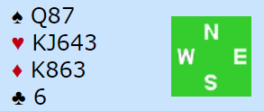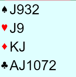 Nord har maks 10 HP (KQ i hjerter, kløver ess og kanskje ruter knekt) om han ikke har spar konge. Det er ganske lite for en overmelding på to-trinnet i faresonen, men det er vel ikke slik at hånden hans er noe bedre om han har spar konge singel selv om det da (på et vis) er 13 HP? Han kan også ha syv-korts hjerter selv om han da kanskje ville meldt 3 hjerter.