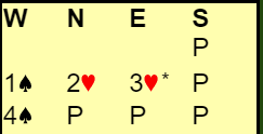 Eneste forskjell er at syd doblet østs 3 hjerter.