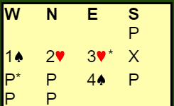 Vest skal spille 4 spar. Der Norge var Ø/V hadde meldingene gått slik: