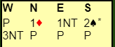 Hvis det kommer ruter ut mot 3NT er det helt håpløst. Nord får godspilt fem ruterstikk. I tillegg har de to ess, altså tre sonebet! Det ville gitt N/S ren topp.