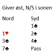 Så nå giddet jeg ikke mer og sa bare 7 kløver. Det kan hende det står i 7NT, men det får så være, 7 kløver må stå!