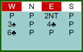 Øst skal altså spille 6 kløver. Hva ville du spilt ut?