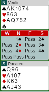 De samme to som var heldige da de meldte en knallhard slem tidligere i kampen stoppet i dette tilfellet i utgangen 4 spar.