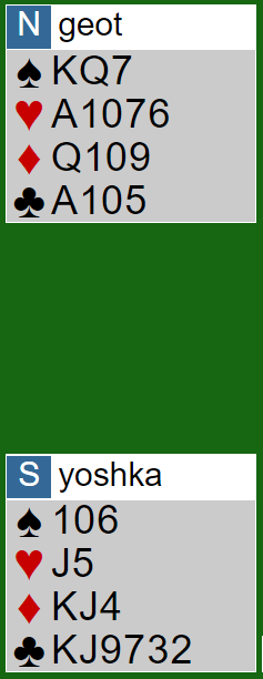 Det var foråsvidt blink, selv om 3Nt selvsagt er bedre. Hjerter knekt gjør at det er to stoppere i fargen etter østs utspill hjerter 8. Om kløverfargen gir full uttelling er det bare å godspille stikk i ruter/hjerter, og Ø/V kan ikke få mer enn tre stikk.