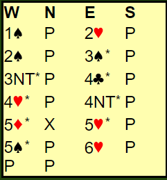 Heskje passet på 6 hjerter, og hele meldingsforløpet ble altså slik: