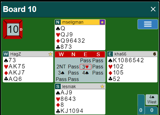 PS. En annen løsning Hegge nevnte når han valgte å spille spar i andre stikk er å legge liten på nords spar dame. Da er det også safe slik det her sitter. Men syd kunne hatt A-Q-J i spar, og i så fall kommer han inn og det ubehagelige kløverskiftet kommer fra syd. Derfor er nok beste plan å spille mer ruter i andre stikk.